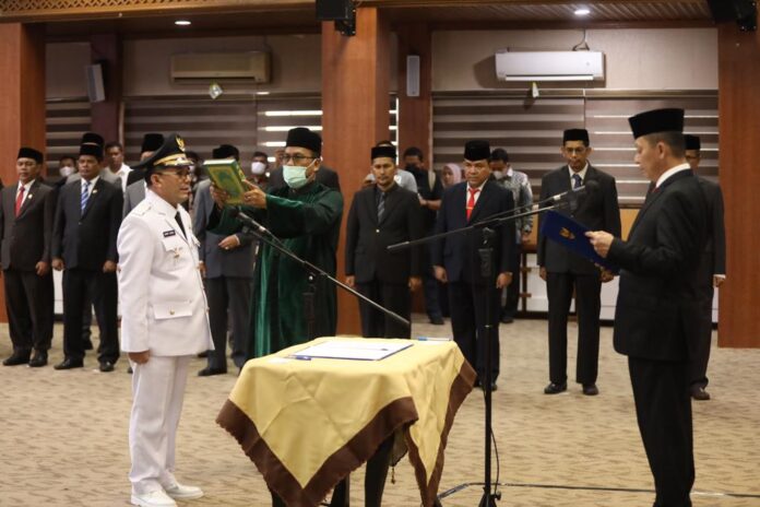 Nukilan.id – Penjabat (Pj) Gubernur Aceh, Ahcmad Marzuki resmi melantik Bakri Siddiq, S.E M.Si sebagai Pj Walikota Banda Aceh periode 2022-2024 pada Kamis (7/6/2022) di Gedung Serbaguna Kantor Gubernur Aceh.