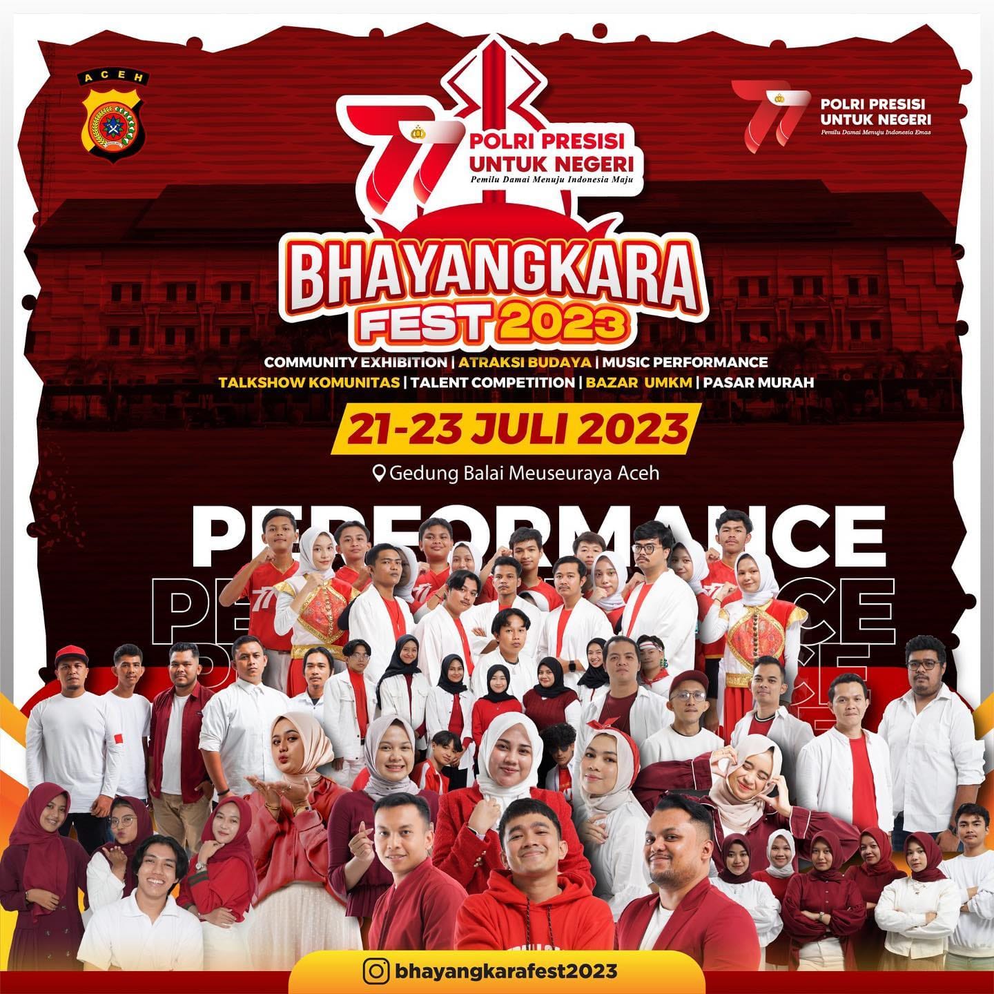 Nukilan.id – Polda Aceh akan menggelar Bhayangkara Fest 2023 di Balee Meuseuraya Aceh (BMA), Banda Aceh, pada 21—23 Juli 2023. Festival ini juga akan dimeriahkan oleh artis ibu kota.