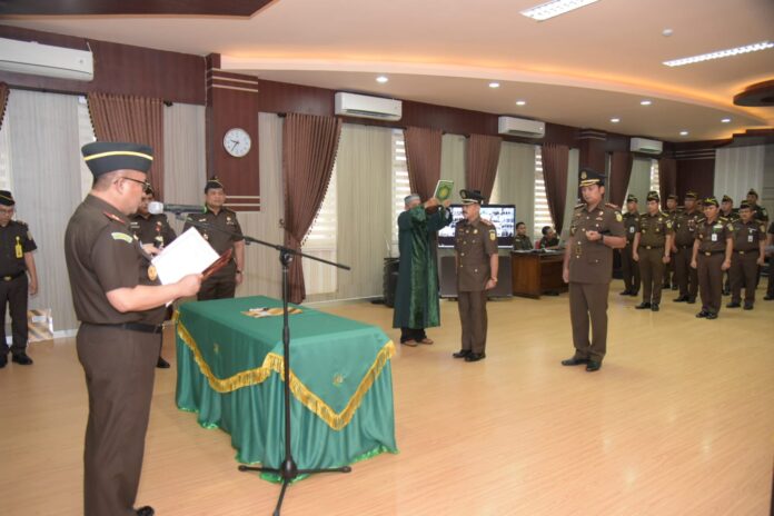 Nukilan.id – Kepala Kejaksaan Tinggi Aceh Bambang Bachtiar, S.H.,M.H memimpin upacara pelantikan, pengambilan sumpah dan serah terima jabatan Kepala Kejaksaan Negeri Subulussalam, Senin (14/8/2023).