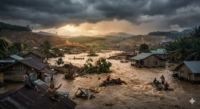 Dari hulu yang terluka, tanah bergerak dan air meluap tanpa kendali, menyeret desa-desa di Aceh, Sumatera Utara, hingga Sumatera Barat ke dalam kubangan lumpur, kehilangan, dan duka yang tak kunjung usai. Di hadapan reruntuhan itu, satu pertanyaan terus menggema: sampai kapan siklus kehancuran ini akan dibiarkan berulang?