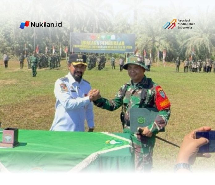 NUKILAN.ID | IDI RAYEUK – Bupati Aceh Timur, Iskandar Usman Al-Farlaky, S.H.I., M.Si, bertindak sebagai Inspektur Upacara pada pembukaan TNI Manunggal Membangun Desa (TMMD) ke-128 Tahun Anggaran 2026 yang berlangsung di Lapangan Sepak Bola Gampong Alue Canang, Kecamatan Birem Bayeun, Rabu (22/4/2026).