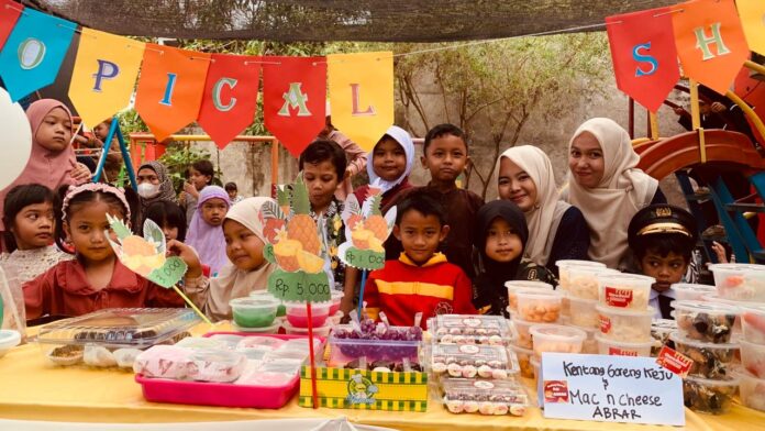 NUKILAN.ID | Banda Aceh – Learning by doing atau belajar dengan cara melakukan merupakan pendekatan yang sangat efektif untuk anak usia dini. Hal ini disebabkan anak-anak pada usia lebih memahami konsep-konsep abstrak melalui pengalaman langsung. Dengan mengadopsi konsep market day yang meneladani perniagaan Rasulullah, anak-anak dapat belajar tentang nilai-nilai ekonomi (bisnis), kejujuran, dan keadilan, juga sambil mengasah keterampilan sosial dan keterampilan matematika dalam konteks yang nyata.