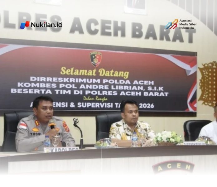 NUKILAN.ID | MEULABOH – Direktur Reserse Kriminal Umum (Dir Reskrimum) Polda Aceh melaksanakan kunjungan kerja dalam rangka supervisi dan asistensi fungsi Reserse Kriminal Umum di Polres Aceh Barat, Jumat (24/4/2026).