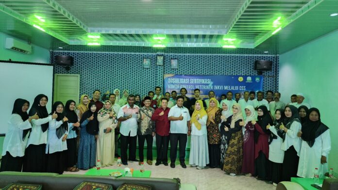 Nukilan.id – Dinas Peternakan (Disnak) Aceh melalui Bidang Kesehatan Hewan (Keswan) dan Veteriner menggelar sosialisasi sertifikasi Nomor Kontrol Veteriner (NKV) melalui OSS di Kabupaten Aceh Barat Daya bagi pelaku unit usaha pangan asal hewan di Hotel Green Ariesta, Blangpidie, Rabu (9/8/2023).