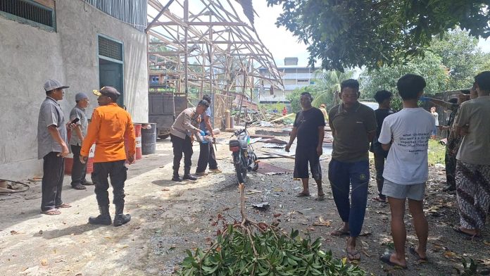 “Masih ada bagian badan di atas bangunan itu, ada juga terbang sampai ke rumah warga sini, sudah diambil tadi,” tutur seorang warga yang tinggal di sekitar lokasi.