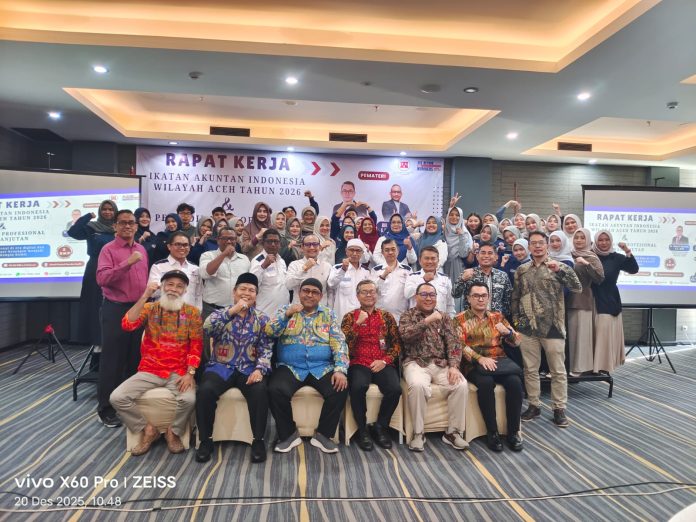 NUKILAN.ID | BANDA ACEH — Ikatan Akuntan Indonesia (IAI) Wilayah Aceh menggelar Rapat Kerja sekaligus Pendidikan Profesional Berkelanjutan (PPL) gratis tahun 2025 di Hotel Kriyad Muraya, Banda Aceh, Sabtu (20/12/2025). Kegiatan ini mengusung tema “Akuntan Profesional di Era Digital dan ESG: Transisi dari Pelapor Keuangan Menjadi Mitra Strategis dan Pemimpin Bisnis.”