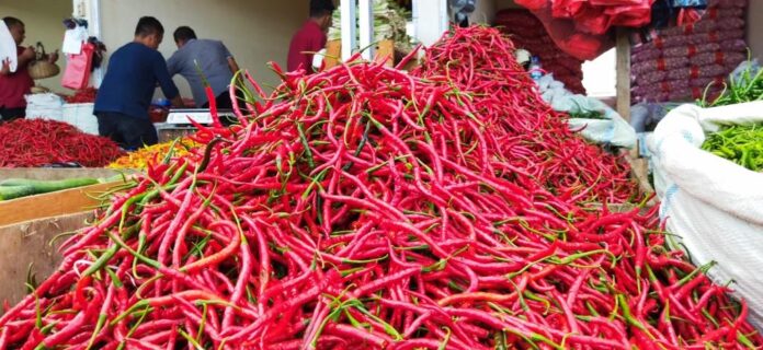 Nukilan.id – Menjelang perayaan Natal dan tahun baru (Nataru) 2024, harga cabai di Pasar Al Mahirah, Lamdingin, Banda Aceh mengalami penurunan yang drastis. Harga cabai merah misalnya yang sebelumnya laku dijual Rp60 ribu per kilogram, kini anjlok menjadi Rp30 ribu per kilogramnya.
