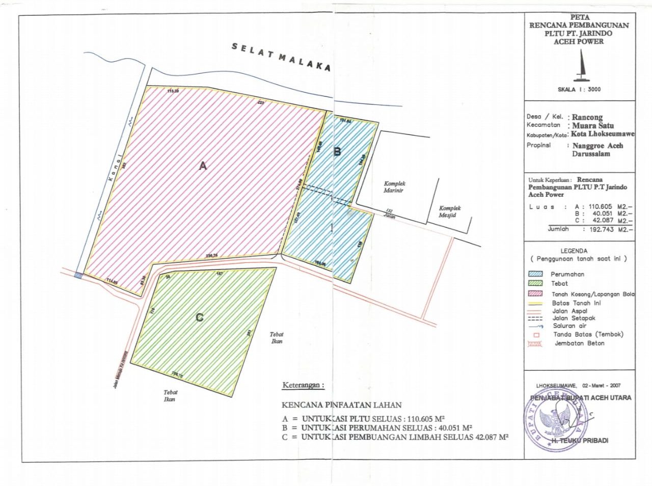 “Saat itu, semua perizinan lokasi sudah siap. Investor pendanaan juga siap. Kami juga sudah mengantongi izin hibah lokasi tanah dari pemerintah pusat, ESDM. Pertamina dan Kementerian Keuangan sudah mendapat persetujuan hibah tanah lokasi tersebut kepada kabupaten Aceh Utara yang merupakan tanah PT Arun milik Pertamina seluas 19,2 Ha untuk dijadikan lokasi PLTU,” kisah Jose.