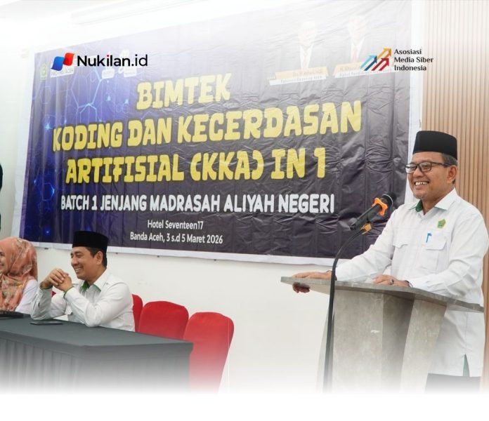 NUKILAN.ID | BANDA ACEH — Kepala Kantor Wilayah Kementerian Agama Provinsi Aceh, Drs H Azhari MSi, secara resmi membuka Bimbingan Teknis (Bimtek) Koding dan Kecerdasan Artifisial (KKA) bagi guru Madrasah Aliyah (MA) Angkatan I. Kegiatan tersebut berlangsung di Hotel Seventeen 17 Setui, Banda Aceh, Selasa (3/3/2026).