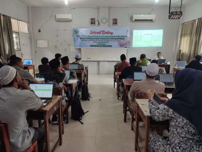 NUKILAN.id | Banda Aceh — Bidang Pendidikan Diniyah dan Pondok Pesantren (PD Pontren) Kanwil Kementerian Agama (Kemenag) Aceh menggelar pelatihan pembinaan aplikasi bagi operator pondok pesantren di Aula Kantor Kemenag Kota Lhokseumawe, Rabu (28/8). Pelatihan ini bertujuan meningkatkan kinerja dan pemahaman para operator dalam menggunakan aplikasi pengelolaan pesantren.