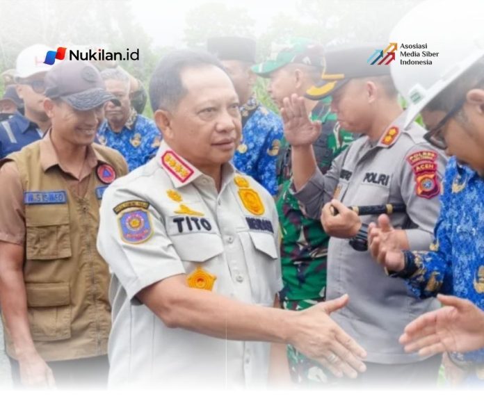 NUKILAN.ID | TAKENGON – Kapolres Aceh Tengah AKBP Muhamad Taufiq, S.I.K., M.H. mendampingi kunjungan kerja Menteri Dalam Negeri Republik Indonesia, Prof. Drs. H.M. Muhammad Tito Karnavian, M.A., Ph.D., ke lokasi sinkhole di Kampung Pondok Balik, Kecamatan Ketol, Kabupaten Aceh Tengah, Senin (20/4/2026).