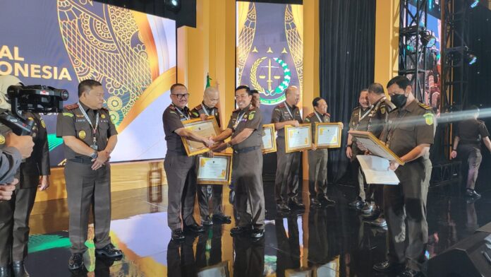 Nukilan.id – Kepala Kejaksaan Tinggi (Kajari) Aceh Bambang Bachtiar S.H.,M.H menerima Penghargaan Predikat Terbaik I dengan Implementasi Keadilan Restoratif Terbanyak dari Kejaksaan Agung RI di Jakarta, pada saat penutupan Rapat Kerja Nasional (Rakernas) Kejaksaan Republik Indonesia Tahun 2023 di Sultan Hotel Jakarta Pusat , Jumat (6/1/2023).