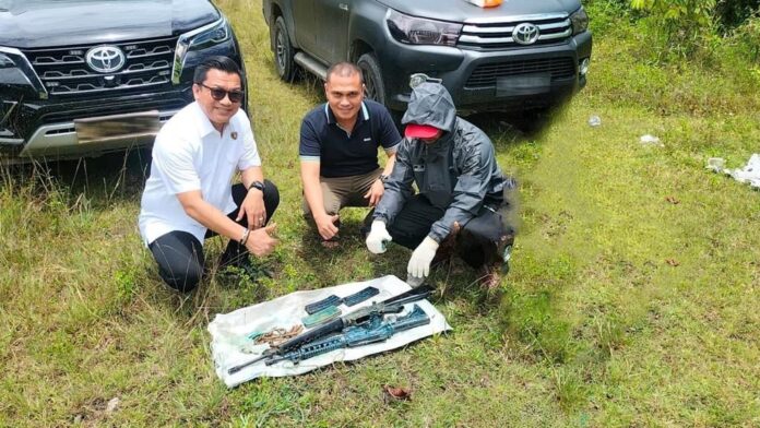 Nukilan.id – Dirreskrimsus Polda Aceh Kombes Winardy menerima dua pucuk senjata api (senpi) laras panjang jenis M-16 sisa konflik Aceh yang diserahkan oleh tokoh masyarakat setempat dengan kesadaran sendiri usai kegiatan sosialisasi illegal mining di Kabupaten Pidie, Rabu, 30 Agustus 2023.