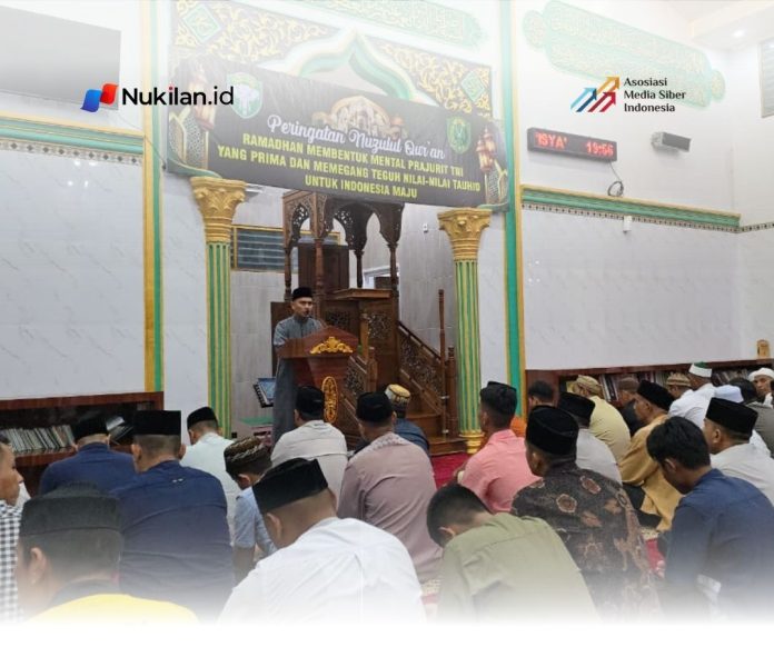 NUKILAN.ID | LHOKSEUMAWE – Korem 011/Lilawangsa memperingati malam Nuzulul Qur’an 1447 Hijriah di Masjid Al-Fitrah, Kompleks Militer Korem 011/Lilawangsa, Kecamatan Banda Sakti, Kota Lhokseumawe, Jumat (6/3/2026) malam.
