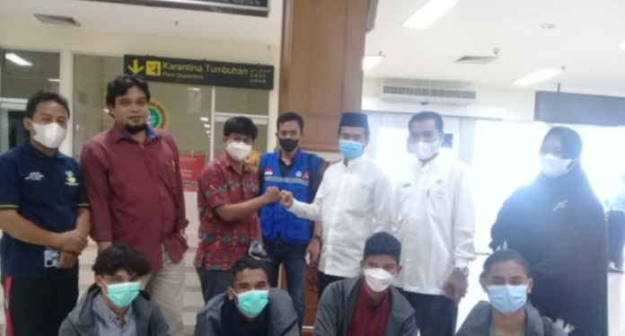 Nukilan.id – Kepala Dinas Kelautan dan Perikanan (DKP) Aceh Aliman, S.Pi, M.Si, bersama Kepala Dinas Sosial Dr. Yusrizal, M.Si mejemput kepulangan 4 nelayan asal Aceh yang ditahan oleh pihak otaritas Thailand di Bandara Internasional Sultan Iskandar Muda, Blang Bintang, Aceh Besar, Jum’at (17/9/2021).