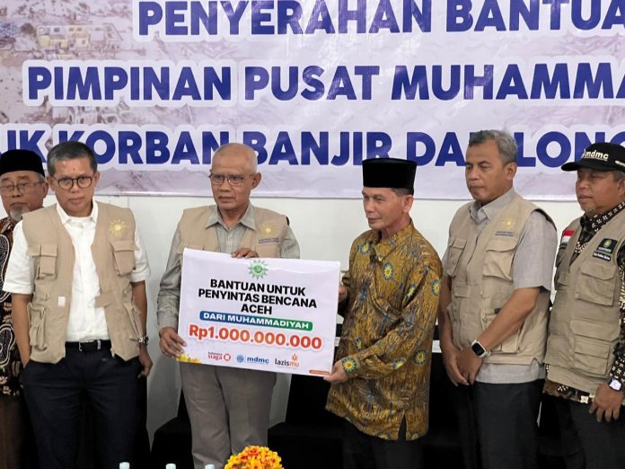 NUKILAN.id | Banda Aceh – Pimpinan Pusat (PP) Muhammadiyah menyalurkan bantuan senilai Rp 3 miliar untuk korban banjir dan longsor yang melanda tiga provinsi di Sumatera. Dana tersebut terdiri dari Rp 1 miliar untuk Aceh, Rp 1 miliar untuk Sumatera Utara, dan Rp 1 miliar untuk Sumatera Barat.