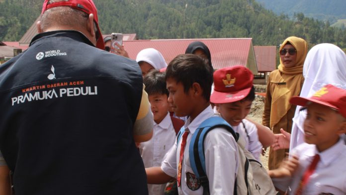 NUKILAN.ID | TAKENGON — Pramuka Peduli Kwartir Daerah Aceh menyalurkan bantuan kemanusiaan sekaligus melaksanakan pendampingan psychosocial trauma-healing bagi anak-anak korban banjir dan tanah longsor di Kabupaten Bener Meriah dan Aceh Tengah. Kegiatan ini berlangsung selama tiga hari, 17–19 Januari 2026, dengan menyasar anak-anak usia 12 tahun ke bawah yang terdampak langsung bencana.