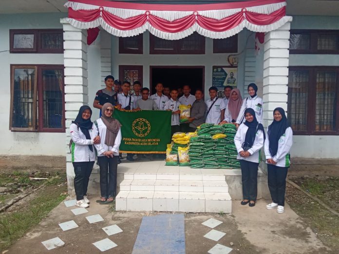 NUKILAN.ID | TAPAKTUAN — Purna Paskibraka Indonesia (PPI) Kabupaten Aceh Selatan bersama Forum Diskusi Tenaga Honorer Aceh Selatan menyalurkan bantuan pangan kepada warga terdampak banjir di Gampong Senebok Pusaka, Kecamatan Trumon Timur, Senin (16/12/2025). Bantuan berupa 500 kilogram beras tersebut diharapkan dapat meringankan beban kebutuhan dasar masyarakat pascabencana.