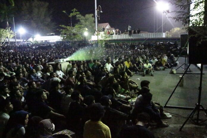 Ketua PMI juga Pada Nobar itu,ll membagikan doorprize kepada penonton untuk menambah semarak nobar.