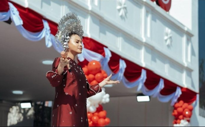 Pantauan Nukilan.id melalui kanal YouTube Sekretariat Presiden, Rossa tampil anggun dengan baju kurung merah marun dan hiasan kepala bertingkat berwarna perak. Penampilannya menambah khidmat suasana peringatan detik-detik proklamasi di halaman Istana Merdeka.