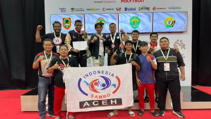 NUKILAN.ID | BANDA ACEH — Setelah sempat terseok di hari pertama, tim Sambo Aceh akhirnya menunjukkan taringnya pada gelaran Pekan Olahraga Nasional (PON) XX/2025 di Kudus. Dua medali—perak dan perunggu—berhasil dibawa pulang pada hari kedua pertandingan, Minggu (19/10/2025), menandai kebangkitan cabang olahraga yang baru pertama kali tampil di ajang nasional ini.