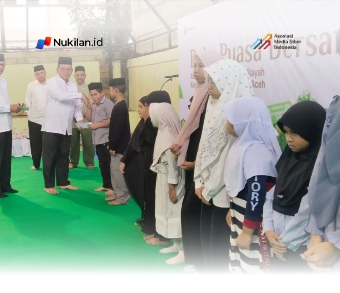 NUKILAN.ID | BANDA ACEH — Kanwil Kementerian Agama Provinsi Aceh menggelar rangkaian kegiatan santunan anak yatim, buka puasa bersama, serta pelepasan purnatugas Kepala Bagian Tata Usaha (Kabag TU) Ahmad Yani, Jumat (27/2/2026). Kegiatan berlangsung di area outdoor kantor wilayah dan diikuti jajaran pimpinan serta aparatur sipil negara setempat.