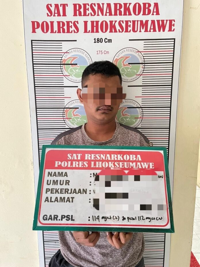 Satnarkoba Polres Lhokseumawe Tangkap Tersangka Pengedar Sabu di Meunasah Mee