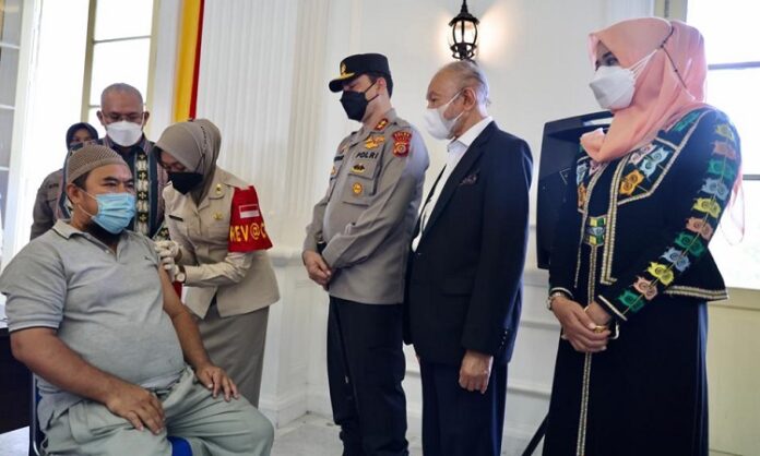 Nukilan.id – Sekretaris Daerah (Sekda) Aceh Taqwallah mendampingi Wali Nanggroe Aceh Malik Mahmud Al-Haythar serta Kapolda Aceh Irjen Pol Ahmad Haydar meninjau pelaksanaan vaksinasi massal Covid-19 yang berlangsung di Meuligoe Wali Nanggroe Aceh, di kawasan Darul Imarah Aceh Besar, Kamis 26 Agustus 2021.