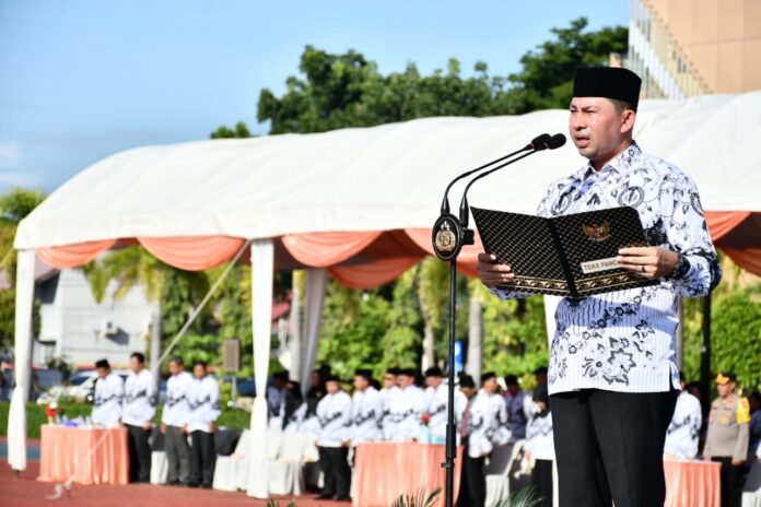 Nukilan.id – Penjabat (Pj) Wali Kota Banda Aceh Amiruddin diwakili Pj Sekretaris Kota Banda Aceh Wahyudi, menjadi Inspektur Upacara pada peringatan HUT ke-78 Persatuan Guru Republik Indonesia (PGRI) dan Hari Guru Nasional (HGN) 2023, di Lapangan Mapolda Aceh, Sabtu, 25 November 2023.