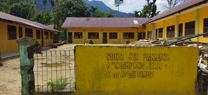 NUKILAN.ID | IDI – Tiga bulan setelah banjir besar menerjang Desa Rantau Panjang, Kecamatan Simpang Jernih, Aceh Timur pada November lalu, aktivitas belajar mengajar di SDN Rantau Panjang memang sudah kembali berjalan. Namun, sekolah itu belum benar-benar pulih. Yang tersisa dari bencana tersebut bukan hanya lumpur yang sempat menutup ruang kelas setinggi lutut, tetapi juga hilangnya hampir seluruh fasilitas belajar yang selama ini menopang proses pendidikan.