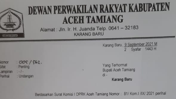 Dalam surat itu dijelaskan bahwa rapat kerja tersebut akan dilaksanakan pada, Selasa (14/9/2021) besok, di ruang Komisi I DPRK Aceh Tamiang pukul 10.00 WIB.